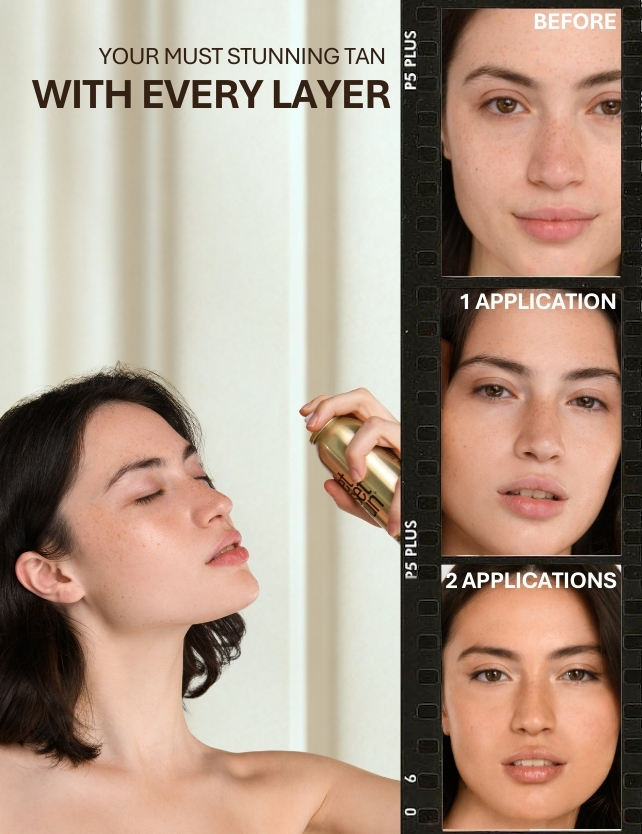 “Génial pour les peaux claires. Sèche en 2 minutes. Si on a mis trop de produit, on peut en retirer une partie en tamponnant avec un kleenex ou autre mouchoir en papier. Si on désire un ton plus foncé, on vaporise une 2e fois le produit.”